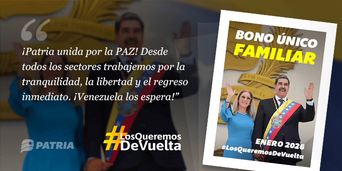 Inicia la entrega del Bono Único Familiar, programa de protección social creado por nuestro Presidente Nicolás Maduro y la Primera Combatiente Cilia Flores. La entrega tendrá lugar del 8 al 13 de enero de 2026.